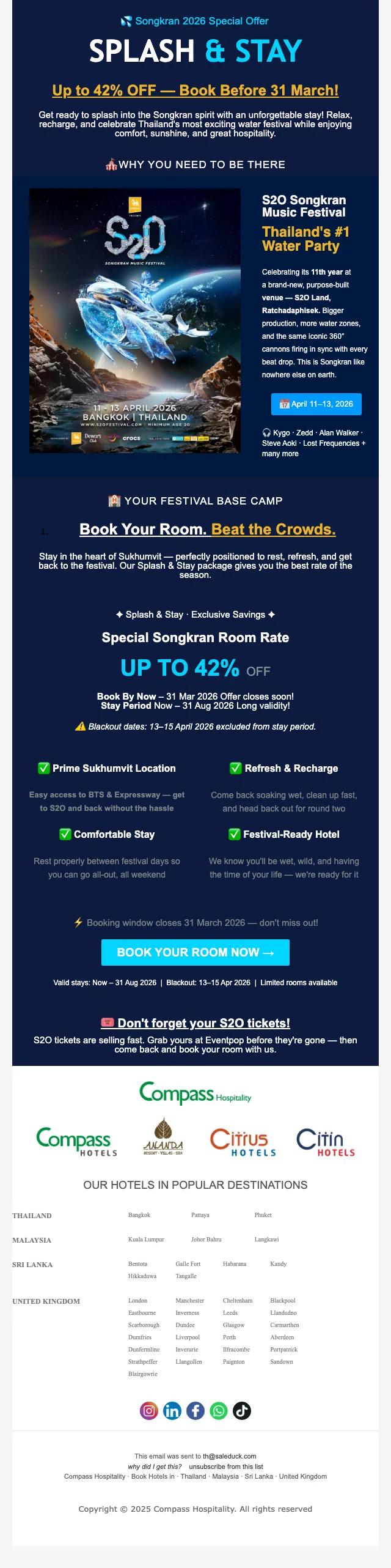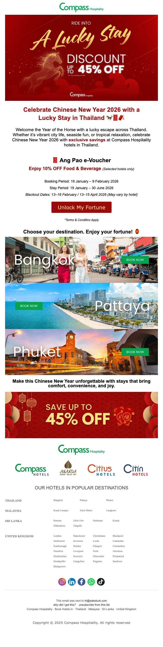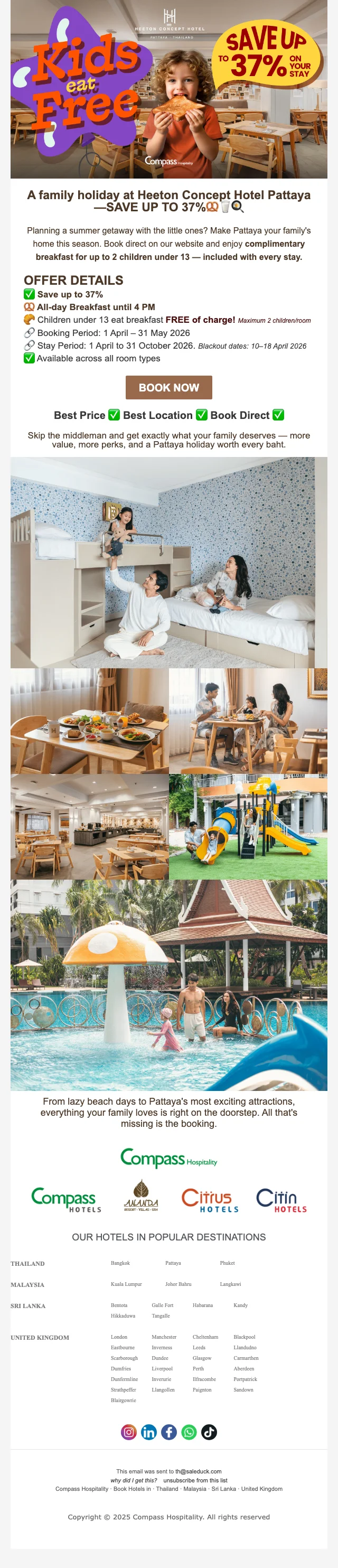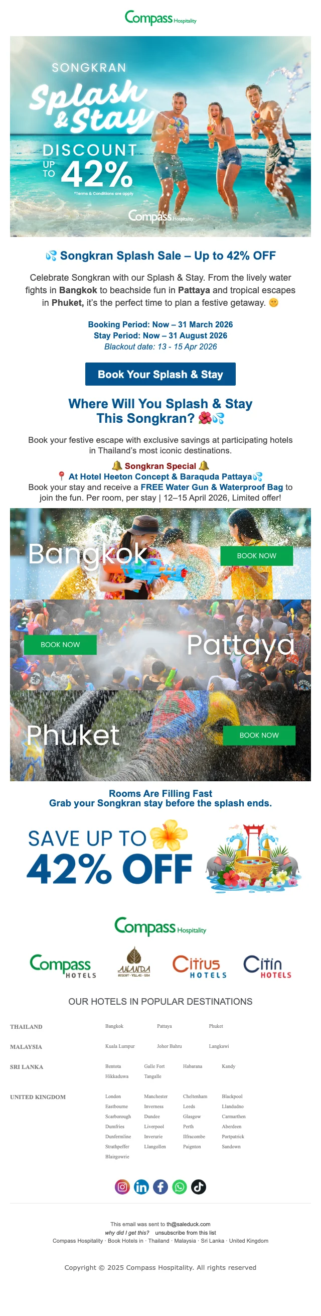 เมื่อคุณทำการสมัครสมาชิก กับ คอมพาส ฮอสพิทอลิตี้ คุณจะได้รับข่าวสารทางอีเมลล์ อัพเดตตลอดเวลา และ รับโปรโมชั่นก่อนใคร ซึ่งลดกว่า 80% พร้อมคูปองโค้ดมากมาย ยิ่งไปกว่านั้น เมื่อจองครั้งแรก รับคูปองส่วนลดทันที 25%