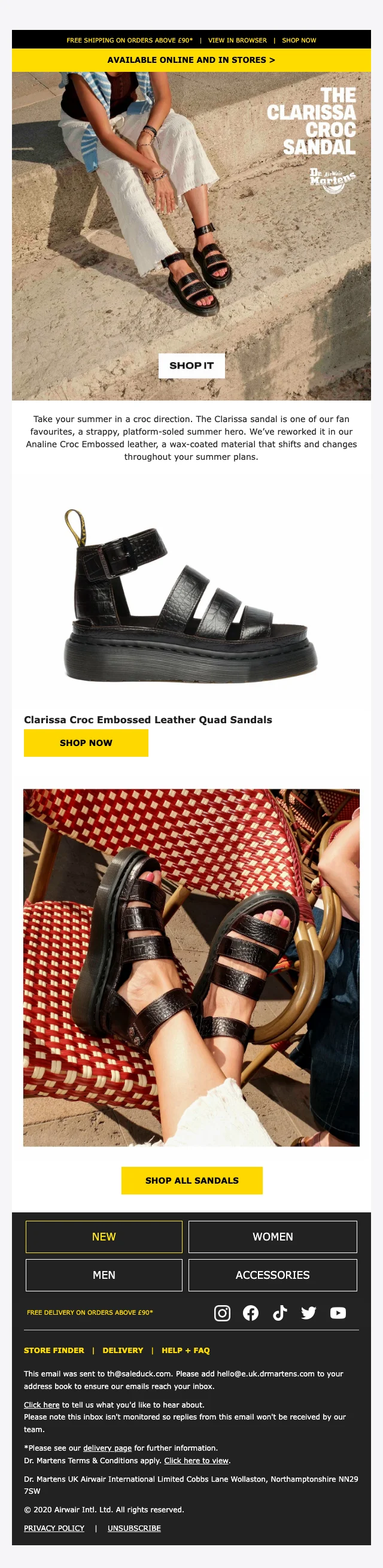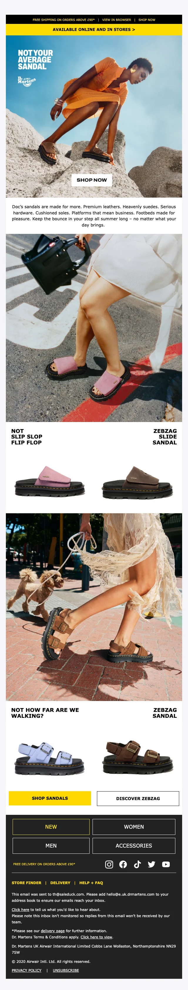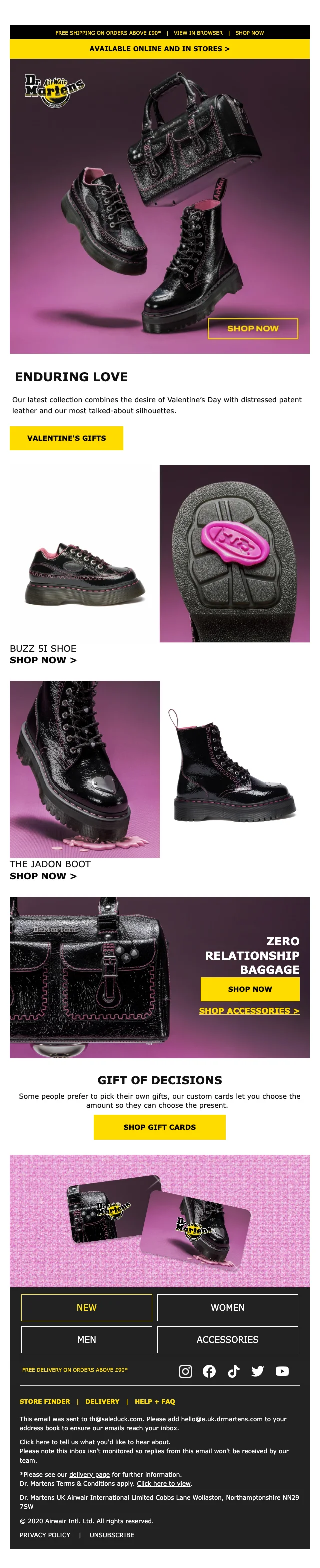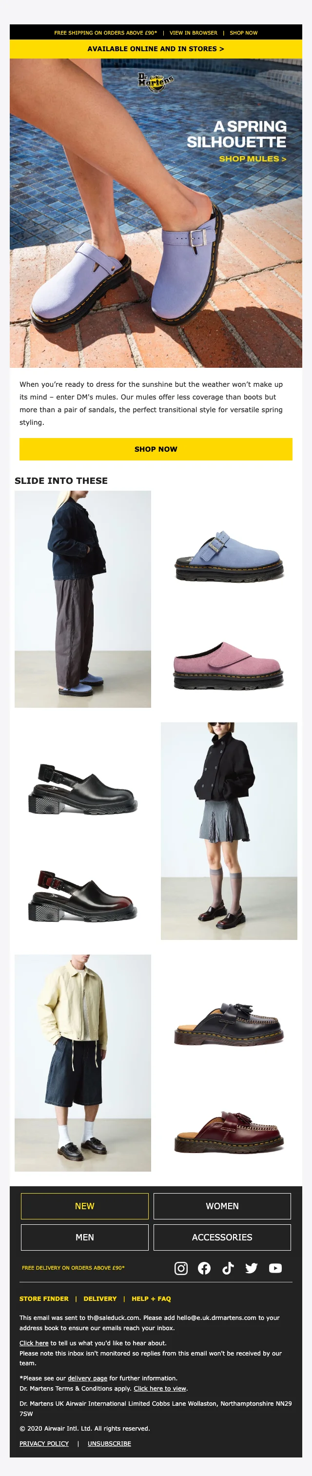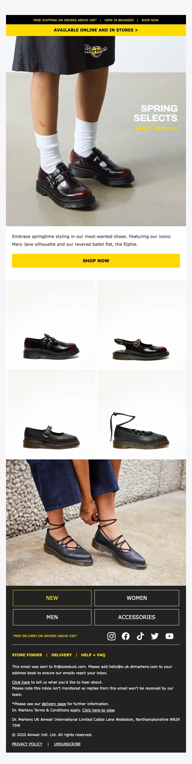 ถ้าคุณสั่งซื้อสินค้าจากร้านค้าออนไลน์ของ Dr. Martens เป็นครั้งแรก คุณจะได้รับส่วนลด 10% ทันที เพียงแค่กรอกอีเมล์เพื่อ Subscribe ง่ายๆ เท่านั้น