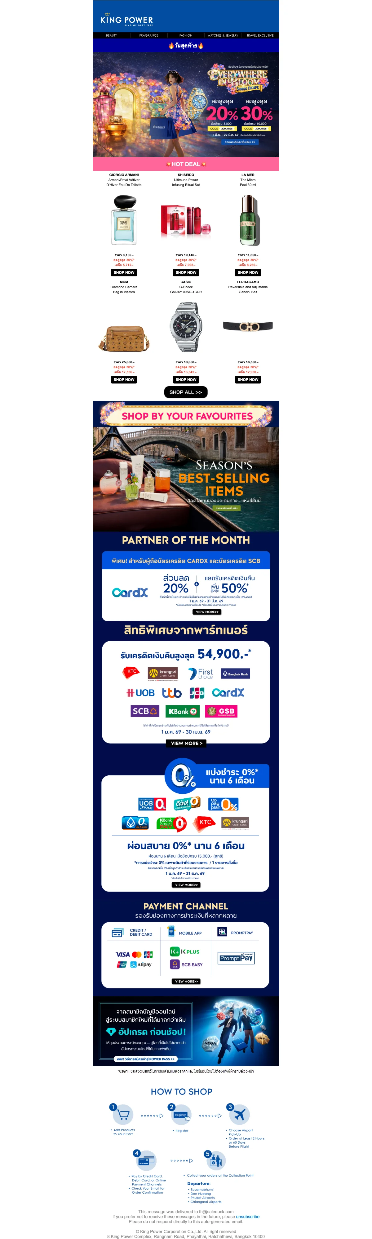 รับรองได้เลยว่า เข้ามาช้อปที่ King Power online คุณจะพบกับ โปรโมชั่น King power ส่วนลด คิงพาวเวอร์ King power ลดราคาและ สิทธิพิเศษมากมาย สำหรับสมาชิก King Power