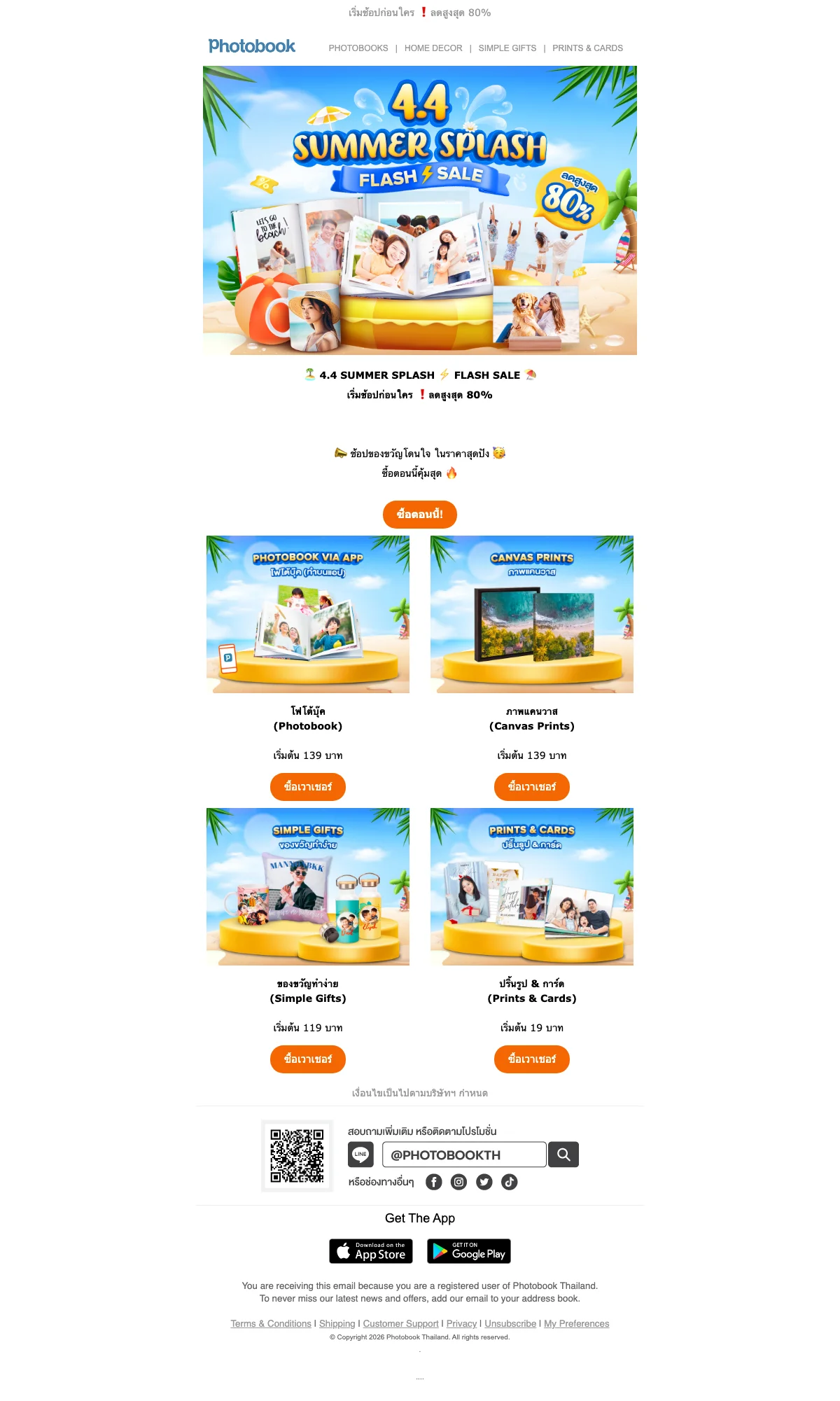 Photobook Thailand flash sale ลดสูงสุด 80% รับซัมเมอร์ 4.4 โปรจำกัดเวลา